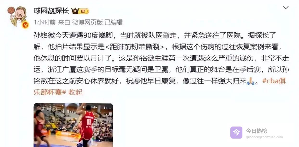 孙铭徽的受伤瞬间,成为了广厦整个赛季征程的一个残酷转折点。 比赛第一节仅仅打了4分钟,他在一次快速反击中起跳上篮,落地时右脚脚踝以一种极不自然的角度向内扭曲,接近九十度。 他随即痛苦地倒地,久久无法站起,最终在队医和队友的搀扶下,被背离了球场。