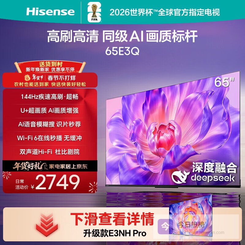 海信电视65E3Q 65英寸 144Hz高刷 U+超画质引擎 AI智能语音 Wi-Fi6 4k液晶平板 国家补贴以旧换新¥