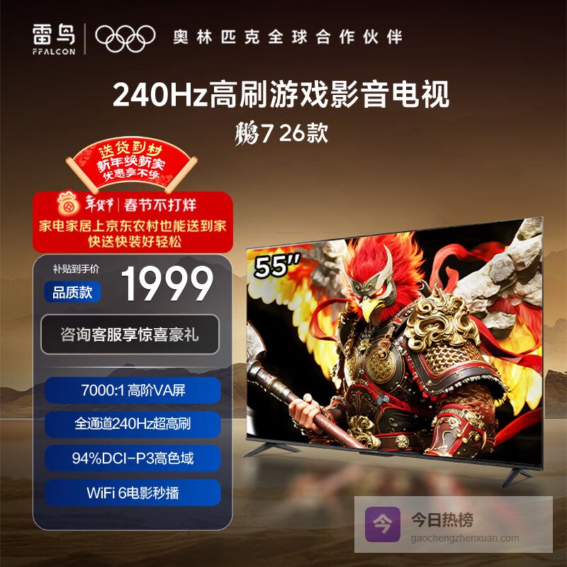 FFALCON雷鸟电视鹏7 26款 55英寸 高阶VA全通道240Hz高刷 HDMI2.1 94%P3色域 灵控系统电视机 55S78A¥