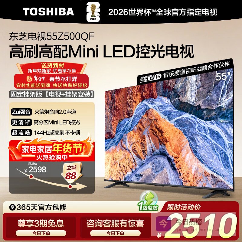 东芝电视55Z500QF 55英寸 Mini LED控光 144Hz【包安装版-固定挂架送装一体】3+128GB 4K 家电国家补贴¥