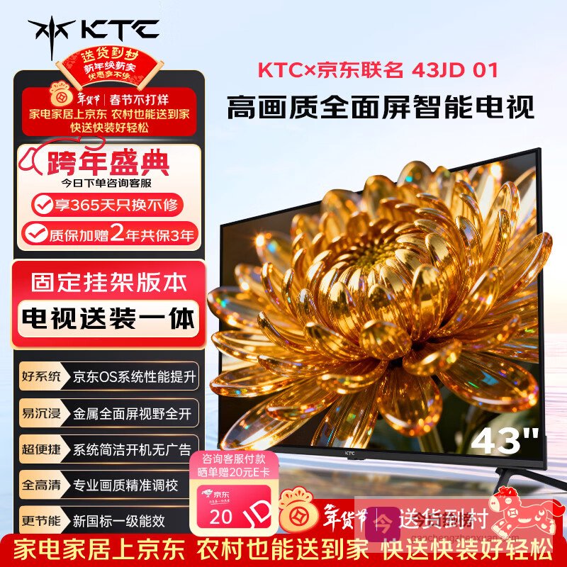 KTC 京东联名款 京东OS开机无广告电视43JD 01系列43英寸 高清全面屏一级能效电视机T43K4¥