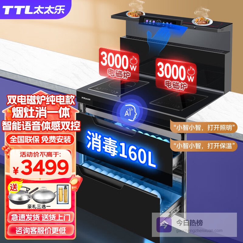 推荐入手:太太乐静音一体式蒸烤集成灶 900宽双电磁炉