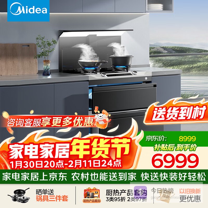 【京东自营】美的【晴空FD90】消毒款集成灶一体式26风量烟机蒸汽洗2.0消毒柜蒸汽洗自清洁家用灶具¥