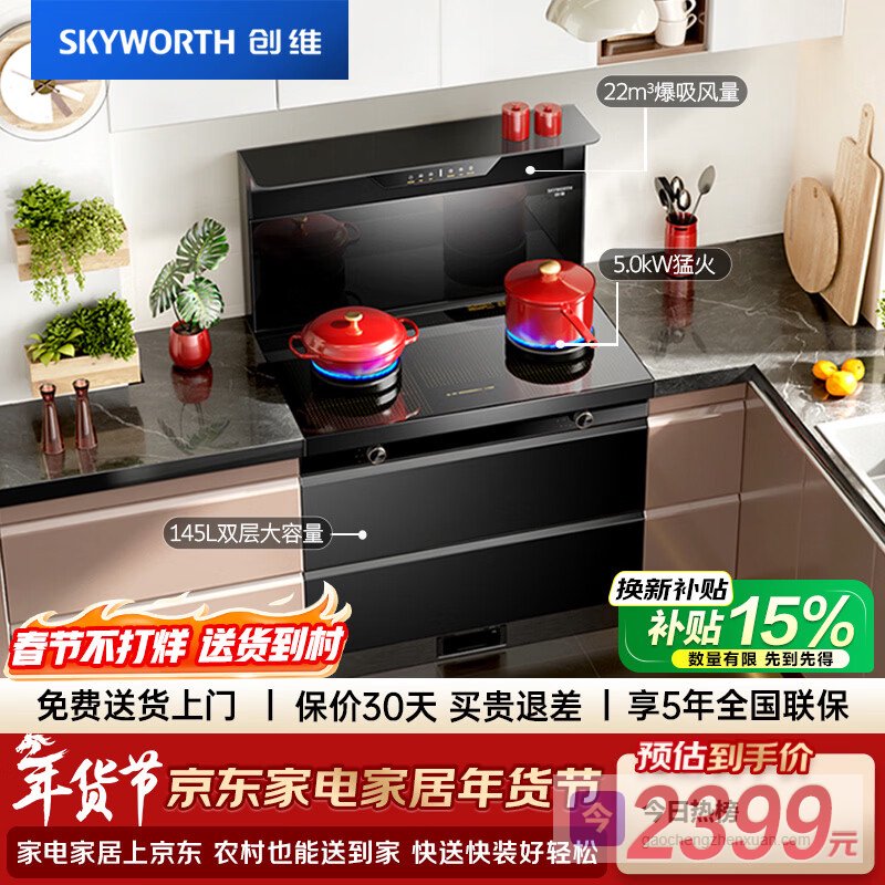 【京东自营】创维集成灶一体式家用保洁柜22m3抽油烟机燃气灶套装烟灶一体机自动清洗家电以旧换新J00¥