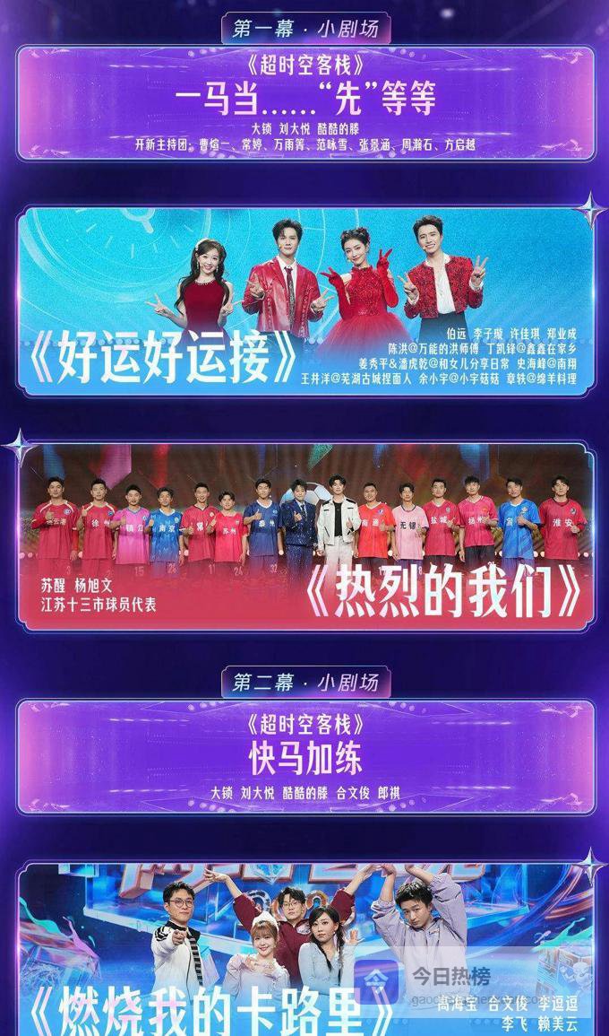 然而,在表演的嘉宾名单中,柯淳、陈添祥、张翅和姚冠宇这四位短剧中的男性演员首次在央视亮相,