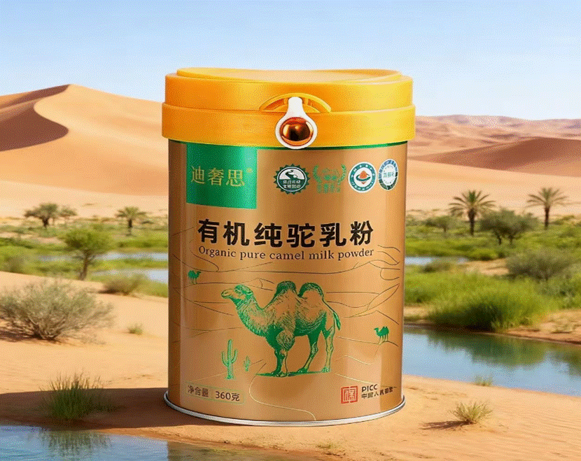 1. 雪山脚下的原生牧场:每罐都带着千年的风沙气息奶源来自沙漠与雪山过渡带的“达里雅布依”古村落,这里的骆驼被称为“沙漠之舟”,饮用昆仑山冰川融水,采食具有药用价值的“大芸”“锁阳”。每罐驼奶都附带“原产地证书”,标注牧场经纬度、骆驼编号,年产量仅30000罐,堪称“驼奶中的奢侈品”。
