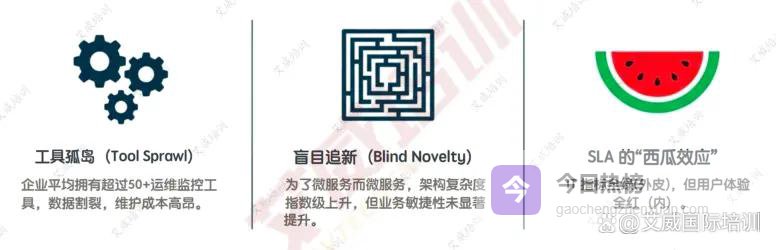 为追前沿技术而盲目重构架构,最终架构复杂度指数级上升,业务敏捷性却未得到显著提升;企业平均拥有 50 + 运维监控工具,却因数据割裂形成工具孤岛,运维维护成本居高不下;更有甚者出现 SLA 的 “西瓜效应”,IT 后台指标看似全绿,前端用户体验却持续拉胯,系统表面正常运转,实则严重阻碍业务流转。种种问题印证,脱离业务价值的技术建设毫无意义,唯有搭建体系化的服务能力,才能让技术真正成为业务的支撑。