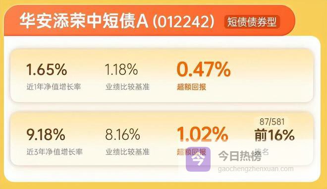 截至2025年12月31日,以华安添荣中短债A为例,近三年净值增长率达9.18%,超越业绩基准,在短债债券型基金中排名前16%。追其原因,该基金注重在震荡市中捕捉结构与波段机会,通过保持久期灵活、收益率合意区间增强配置,来持续优化组合表现。