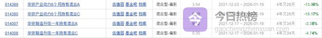 不过,也有表现乏力者。天天基金网显示,蒋璆卸任时,多只产品依然处于亏损状态。例如,华安制造升级一年持有混合A/C份额、任职回报分别为-2.38%、4.74%。华安产业动力6个月持有混合A/C份额,任职回报分别为-13.06%、-15.17%。