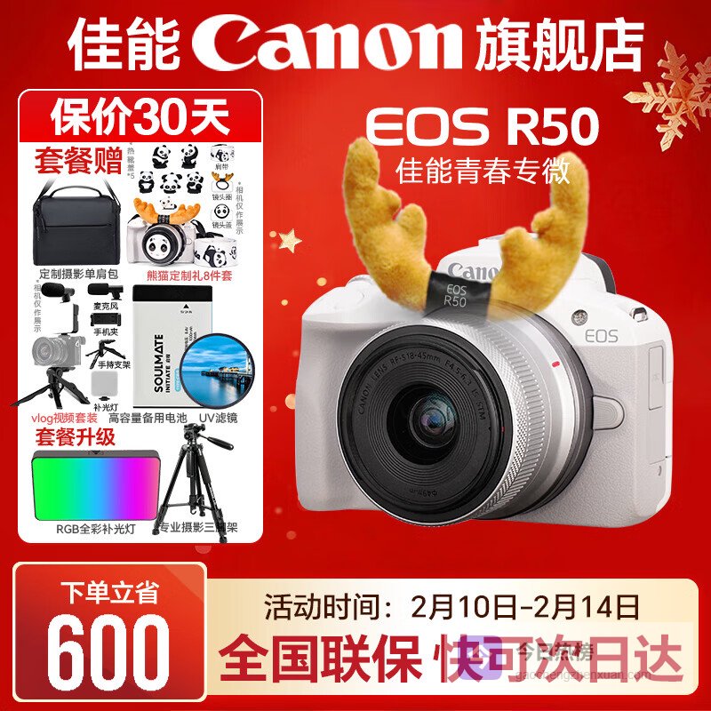 佳能r50相机 入门级微单 旅行家用学生vlog视频 4k小巧便携半画幅R50数码照相机 EOSR50 18-45 STM白色套机 送礼好物 官方标配【不含内存卡相机包等必要配件 推荐选套餐】¥