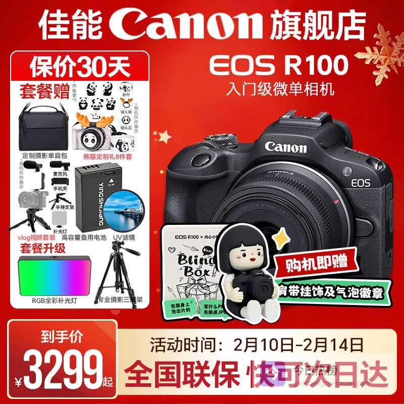佳能r100 入门级微单相机 旅行家用学生vlog视频 4k小巧便携半画幅 数码相机 R100 RF-S 18-45STM 套机 套餐一【基础礼包限量升级128G佳能相机专用卡】¥