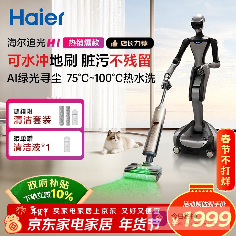 【京东自营】海尔洗地机追光H1净界大师【可水冲地刷】180°平躺防缠洗拖吸一体自动清洗拖地机器人¥