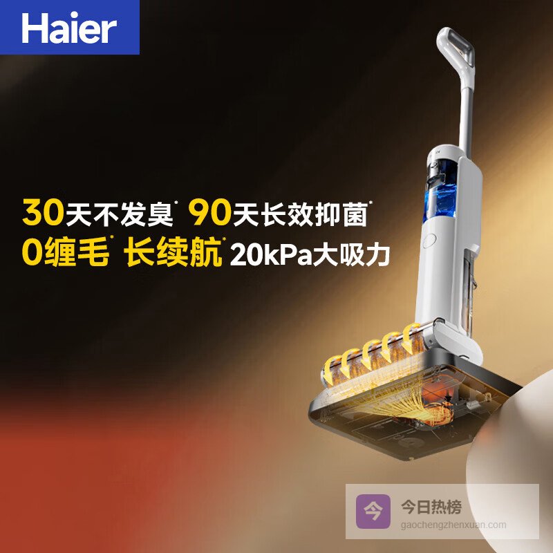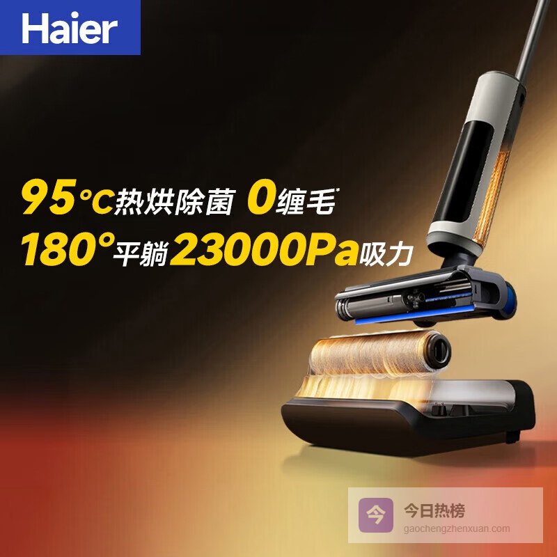 【品牌直营】海尔T30洗地机【23KPa吸力95℃热烘0缠毛12cm超薄平躺】浸泡洗智能家用洗地机吸¥