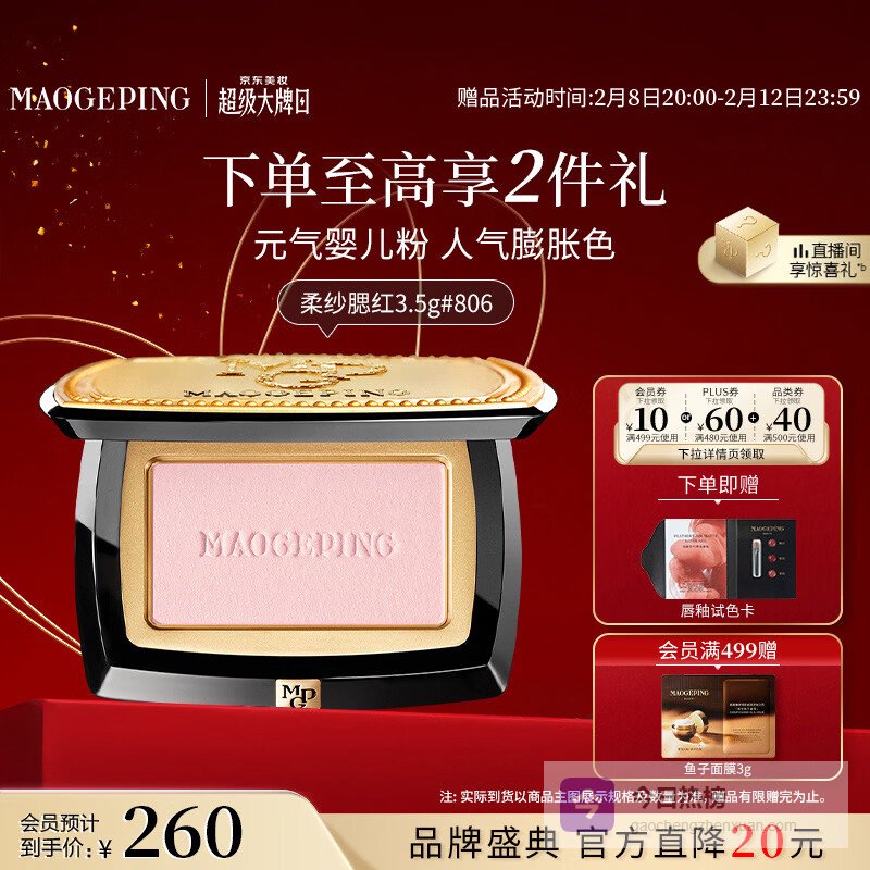 【京东自营】毛戈平柔纱幻颜腮红806纯净早樱3.5g胭脂修容情人节礼物送女朋友¥