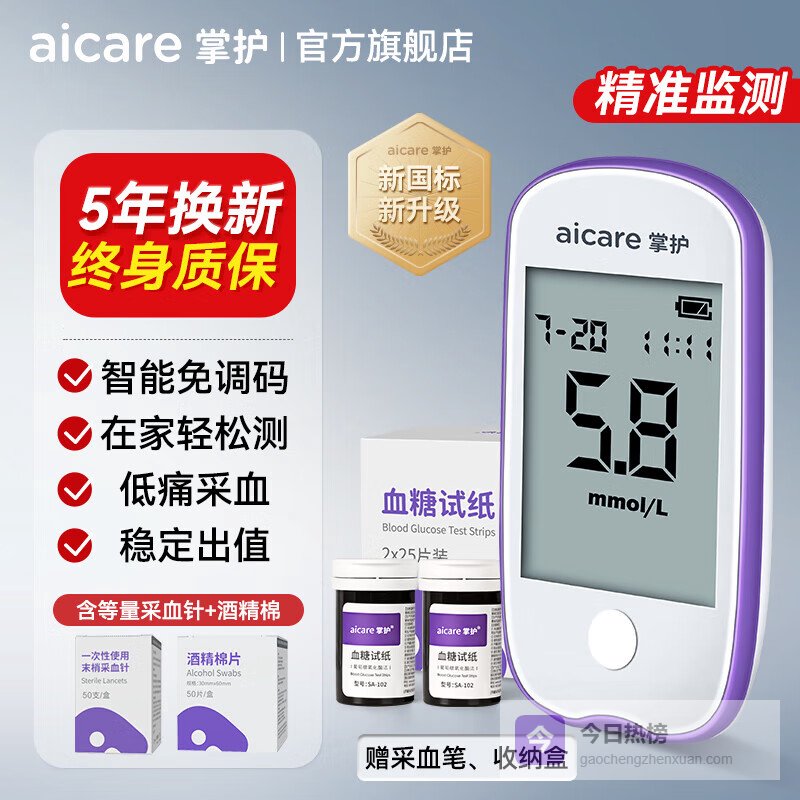 掌护A608血糖仪非动态医用级家用高精准血糖检测仪指尖测血糖仪试纸条 血糖仪+50(试纸+采血针+酒精棉)¥