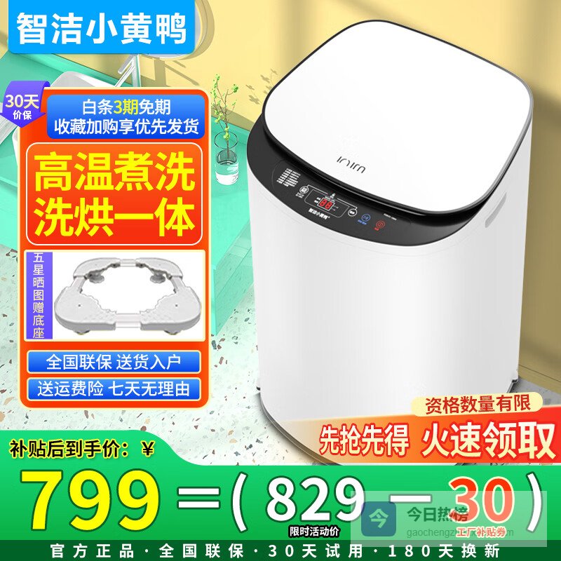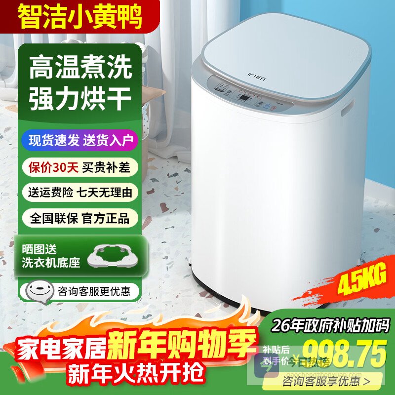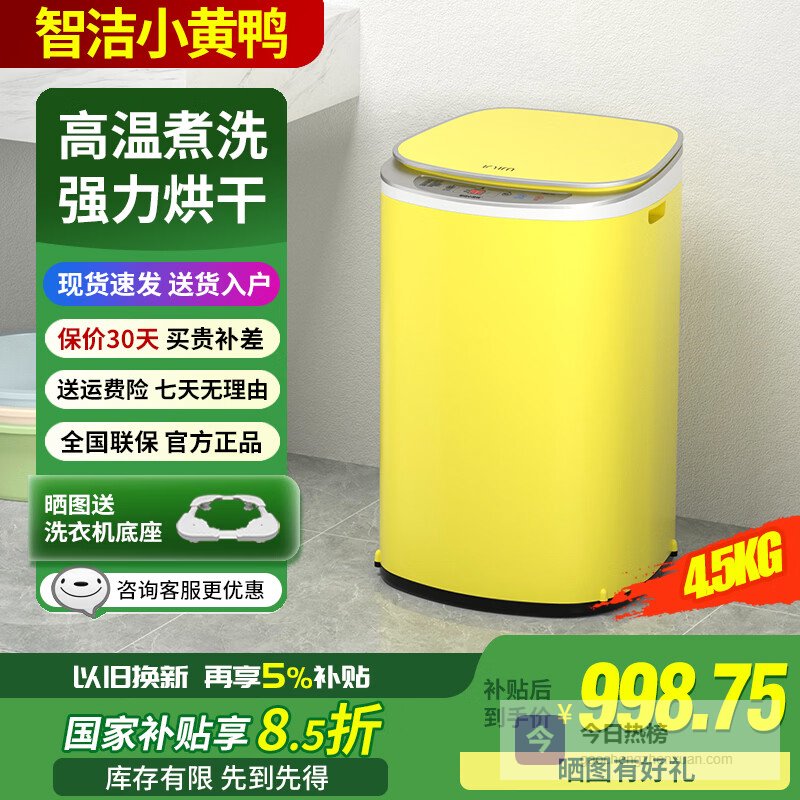 【品牌直营】智洁小黄鸭迷你高温煮洗4.5kg婴儿洗衣机全自动杀菌蓝光智能热烘干一体机家用儿童小型宝宝¥