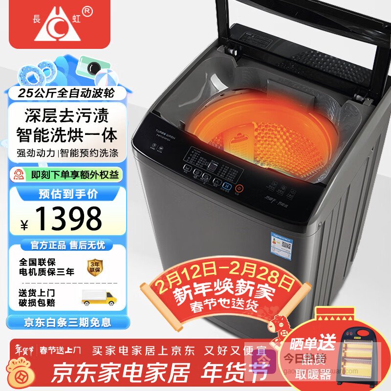 【品牌直营】长虹全自动洗衣机大容量洗烘一体强力风干自清洁宿舍出租房家用波轮洗衣机洗脱一体机25公斤【¥