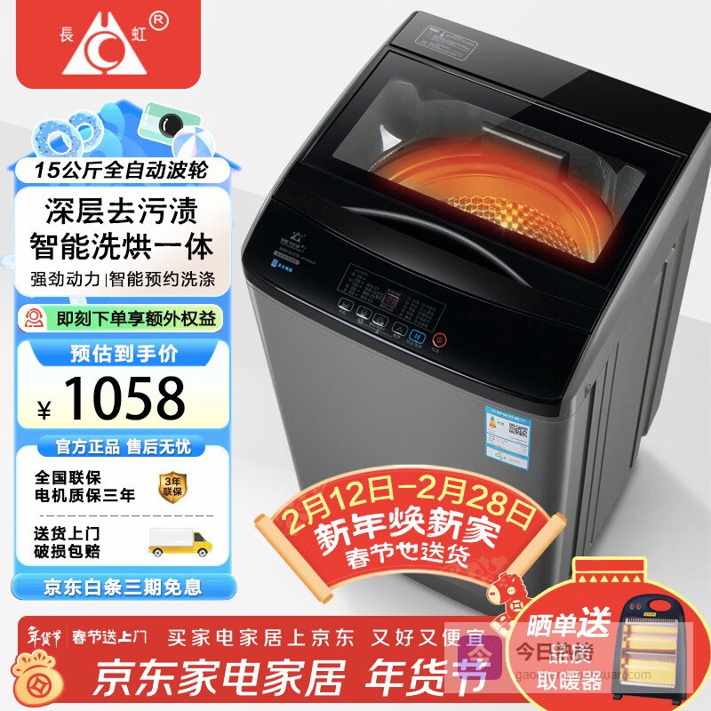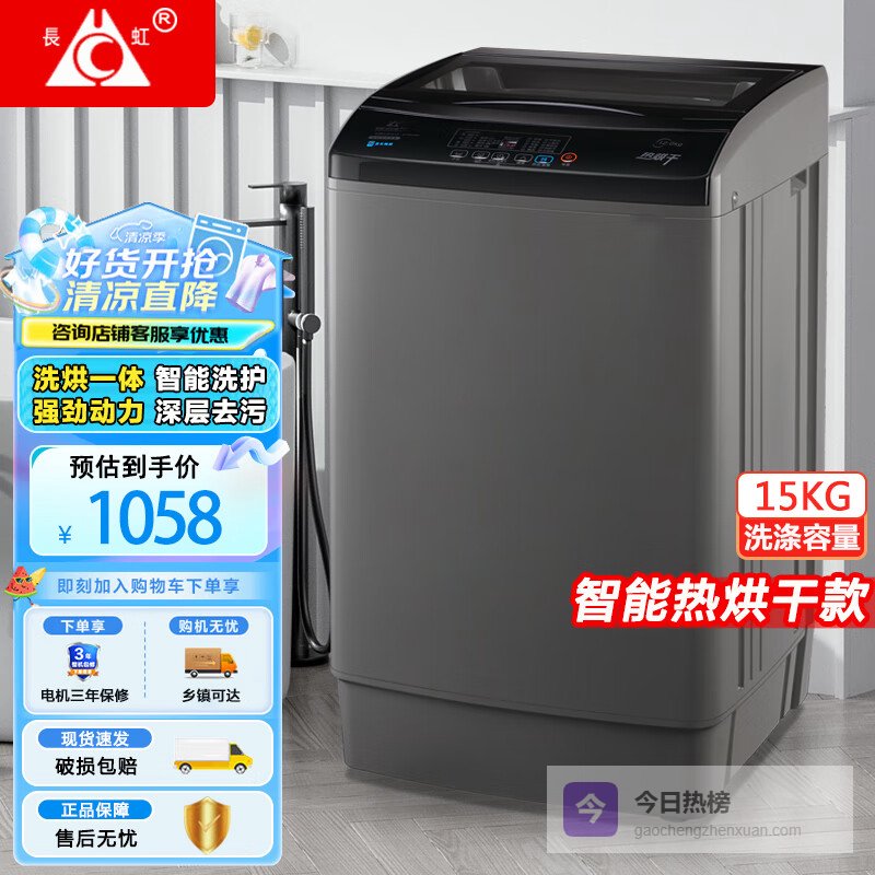 【品牌直营】长虹全自动洗衣机大容量洗烘一体强力风干自清洁宿舍出租房家用波轮洗衣机洗脱一体机15公斤【¥