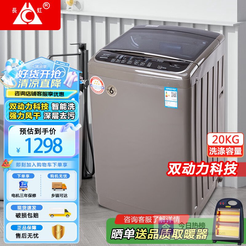 【品牌直营】长虹全自动洗衣机家用租房大容量洗烘一体机波轮洗脱一体机风干桶自洁仿生手搓以旧换新20公斤¥