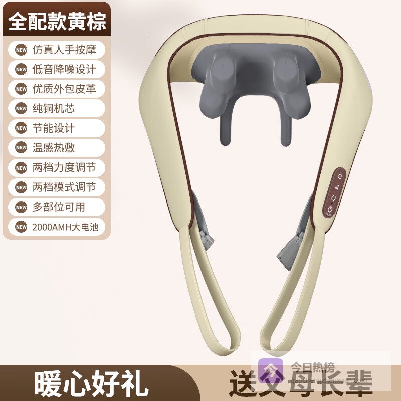 斜方肌按摩仪肩颈按摩器颈部颈椎神器脖子肩膀揉捏热敷按摩披肩 黄棕色(仿真人按摩+低音降噪+2档力度+2档模式+¥