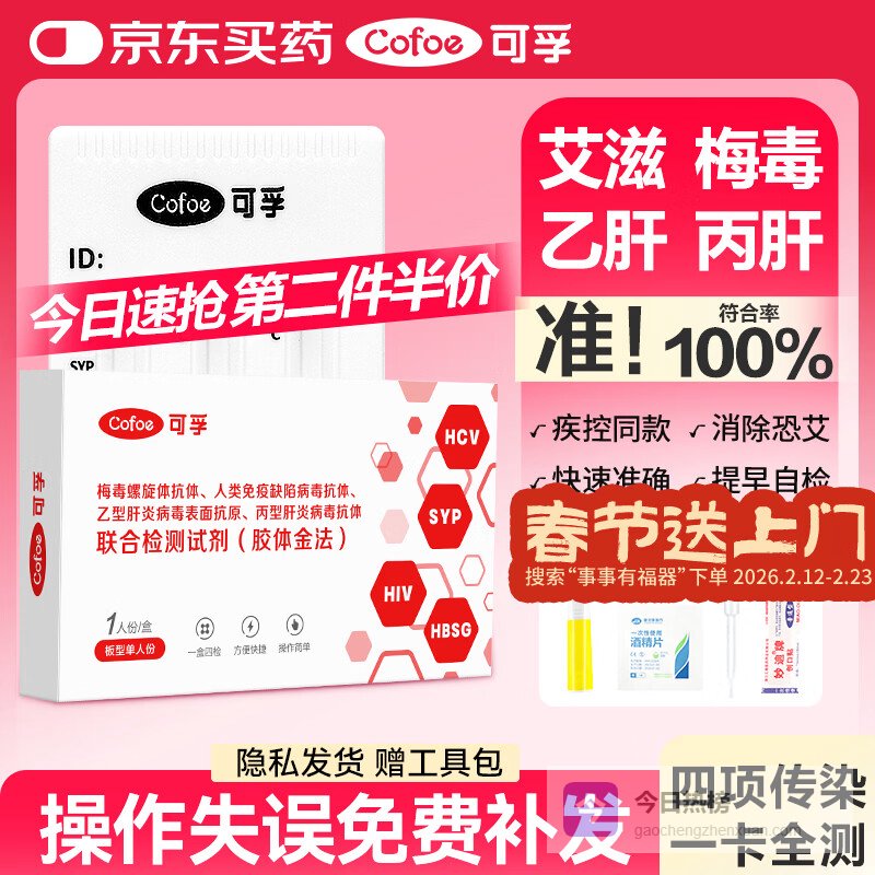 可孚 hiv艾滋病检测试纸四联性病检测试纸四合一传染病四项试纸非四代¥