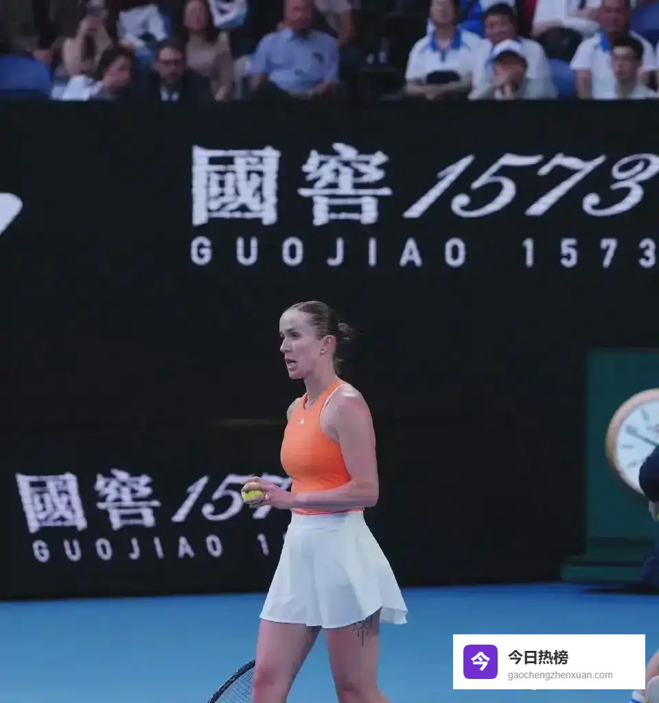 首盘6比2。第一局,她的发球落点变化多,线路拉开,球权拿在手里。对手第一发进球率不理想,回合里失误频繁,破发点不断被创造。萨巴伦卡抓对手二发,往反手位压,连续上手。第三局出现一个插曲,她回击时喊声延迟,裁判判干扰,直接给斯维托丽娜一分。网球里有噪音干扰规则,声音影响对手判断,就判分,这一条大家都懂。判分后,场面没乱,她照样接着走自己节奏。她在首盘里用发球和第一拍把分数堆起来,连续破发,比分拉到6比2。你看她每次跑位,脚步到位后立刻出拍,不给对手二次组织的时间。她在拉锯里很少退后,更多选择上步,把来球顶住,回球落到深区。这一盘,斯维托丽娜的机会不多,稍微有空档,马上被对手封住。她的接发站位也在根据对手发球变化微调,站内抢,站外跟,分工明确。首盘结束,现场安静一下,所有人脑子里都是同一个问题,第二盘还能改走向吗。