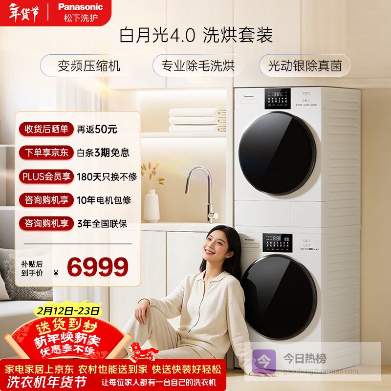 推荐入手:松下白月光洗烘套装 10kg 滚筒洗衣机+热泵烘干机
