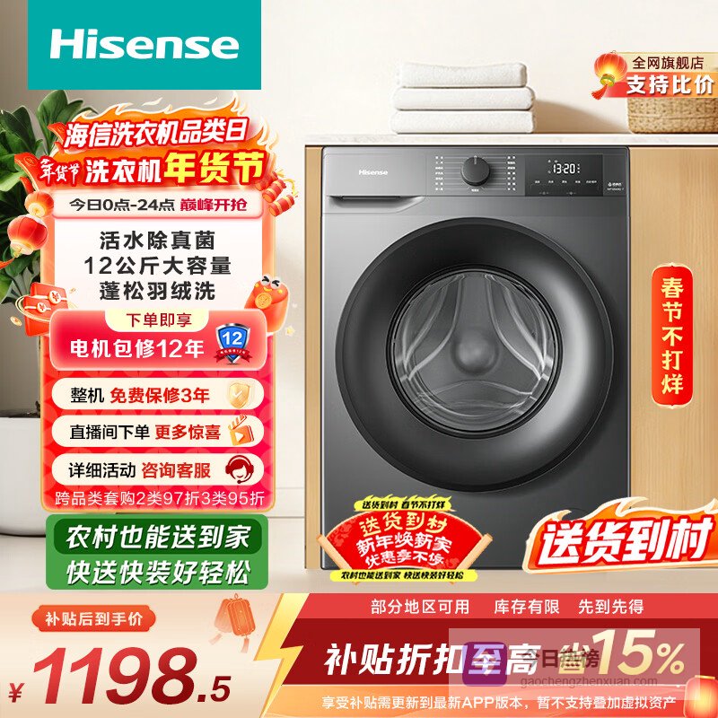 推荐入手:海信超大容量滚筒洗衣机WF120A0Q-7