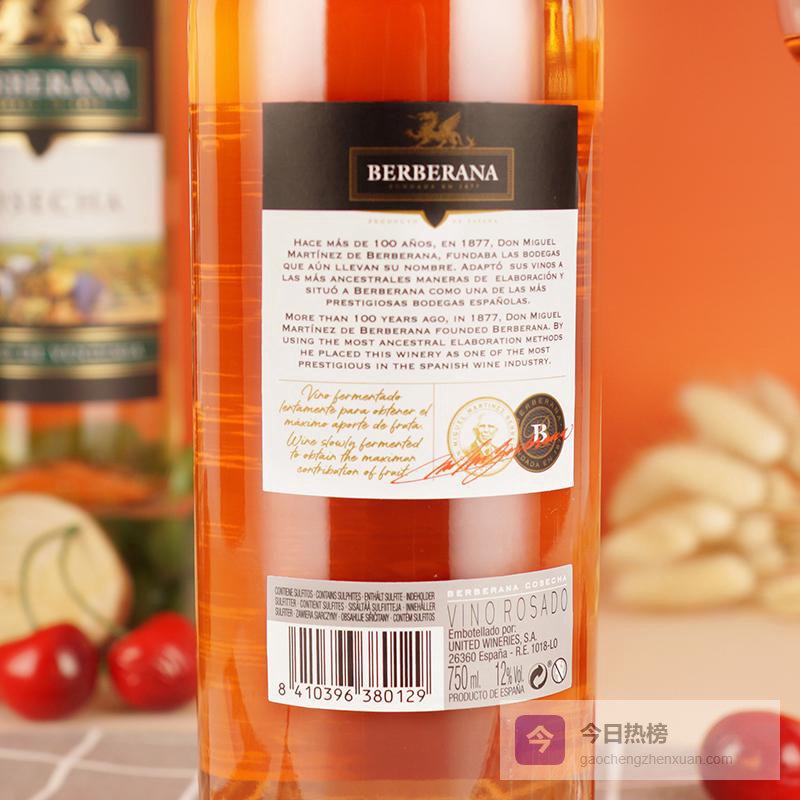 【品牌直营】BERBERANA西班牙原瓶进口红酒联合酒业BERBERANA贝拉那热红酒葡萄酒丰收玫红¥