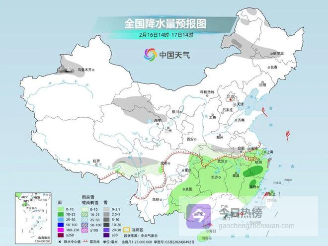 大年初一至初二,南方的降雨将整体减弱减少。