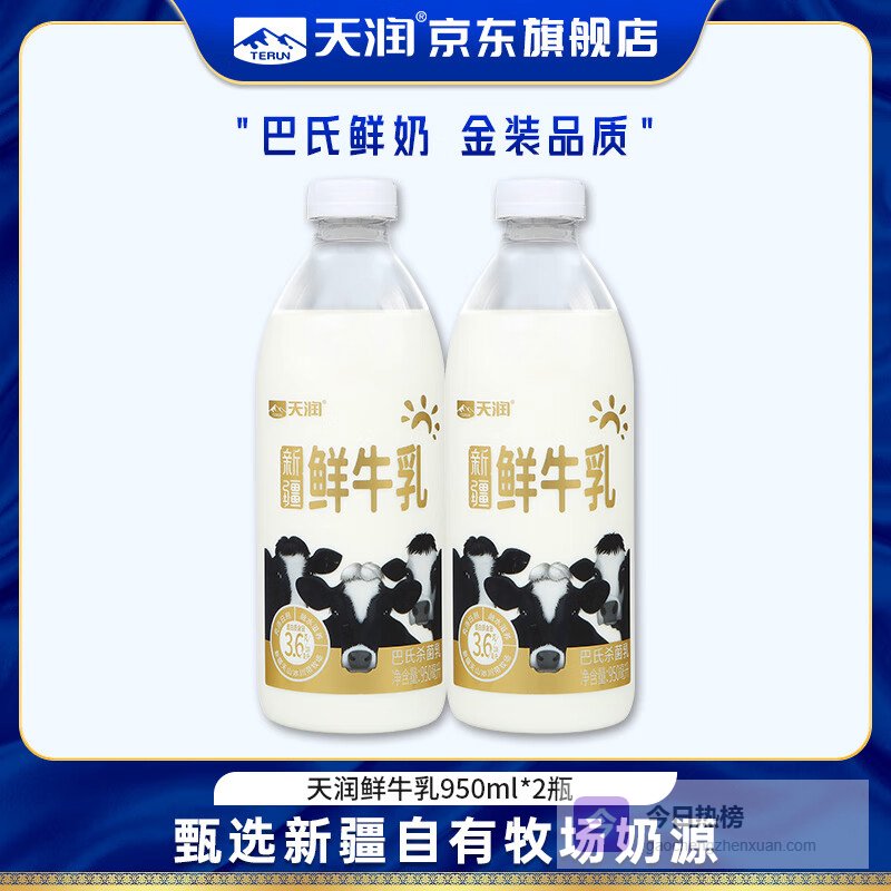 天润鲜牛奶 新疆特产巴氏杀菌鲜牛乳 全脂儿童早餐新鲜低温乳品鲜奶 金瓶鲜奶 950ml*2瓶¥