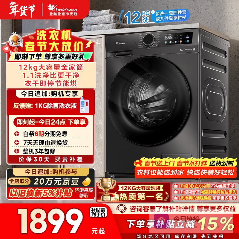 在都市生活中,空间的合理利用尤为重要。小天鹅滚筒洗衣机凭借其超薄设计,完美融入家庭中的每一个角落,不论是小户型还是有限的阳台,都能轻松嵌入。而洗衣过程中,12公斤洗涤容量使得换季衣物一次性清洗成为可能,解决了传统洗衣机因容量不足带来的烦恼。