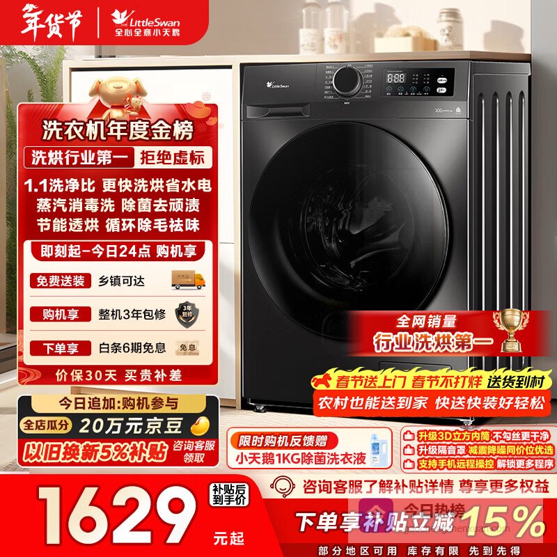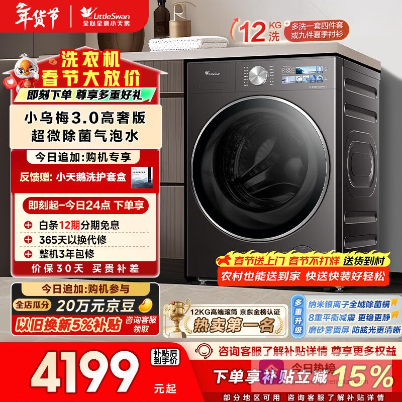 高奢版设计不仅提升了视觉感受,更赋予了洗衣机高效清洗效果,满足对品质生活的追求。在享受国家补贴及以旧换新政策的同时,消费者能够以更具经济实惠的方式选择这一优秀产品,享受科技带来的高效、便捷和舒适。