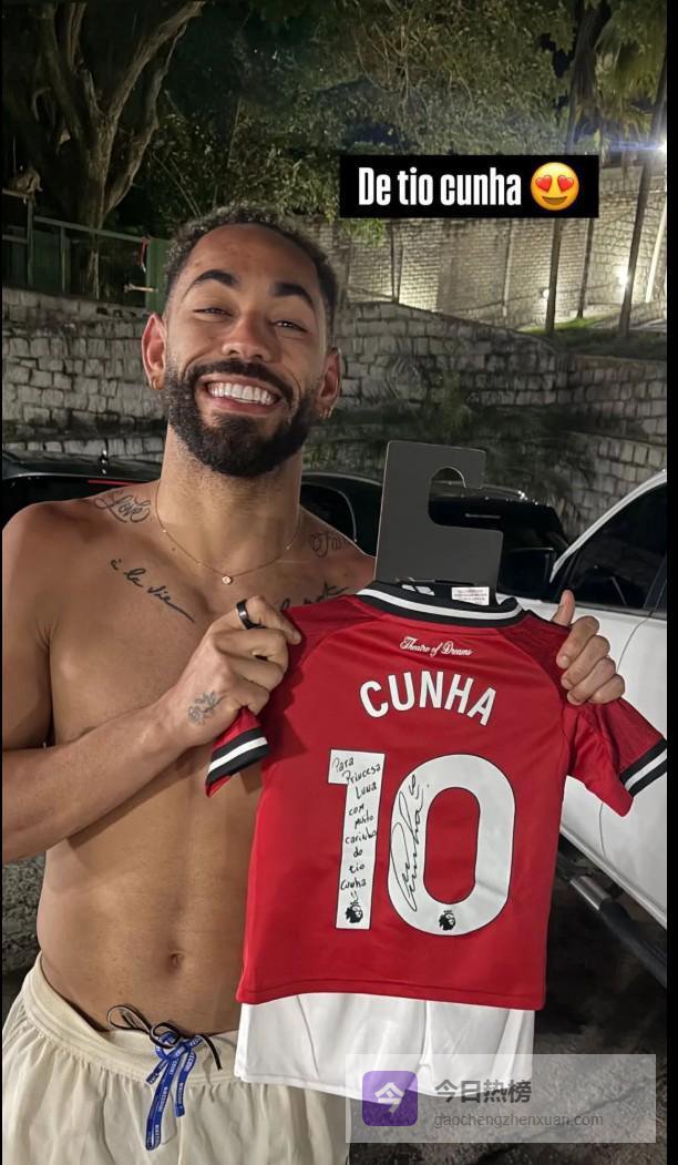 这位巴西人晒出了赤裸上身、手持曼联复刻球衣的照片。