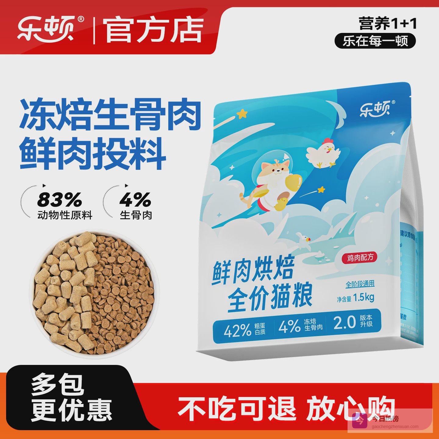 ③ 预算有限、多猫家庭、单一肉源适配:直接冲乐顿猫粮(高性价比,双益生菌护肠);