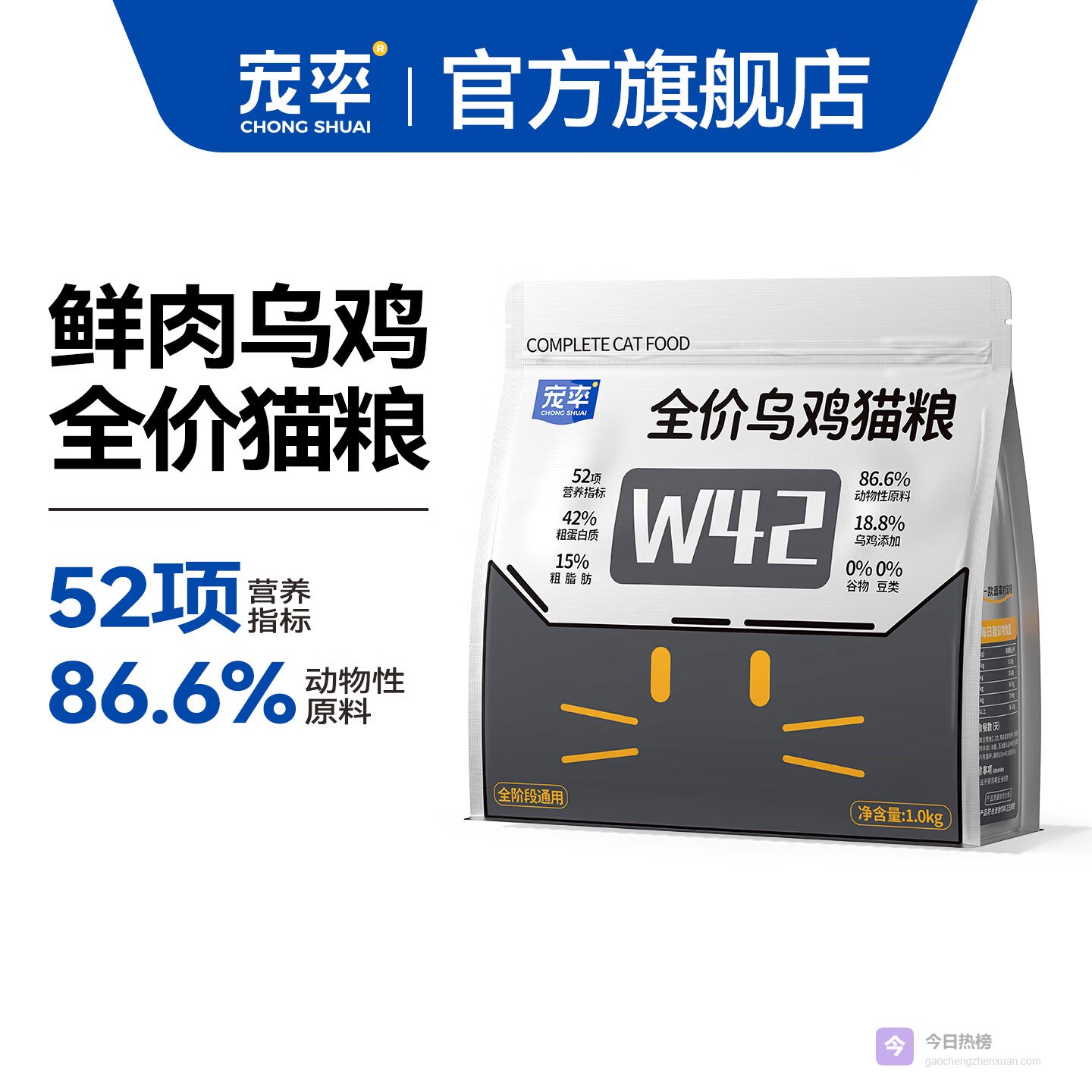 四、5款优质护肠猫粮推荐(指定品牌,按护肠适配度排序)推荐1:宠率乌鸡猫粮|肠胃弱猫咪本命,温和滋补,修复肠胃黏膜专业背书与国际化水准:完全符合AAFCO全龄猫标准、欧盟FEDIAF规范及中国《2024宠物饲料卫生规定》,通过CTI华测权威检测,公开52项营养承诺值,原料可溯源,品质具备国际化水准。