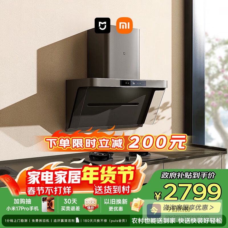 【京东自营】米家小米抽吸油烟机净烟机P1家电以旧换新上门安装家用大吸力一级能效免拆洗可配燃气灶MJ0¥
