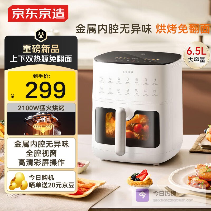 京东京造新款【上下双热源】空气炸锅可视大视窗多功能电子触控 家用实用6.5L大容量金属内腔AF-6004MT-3C¥