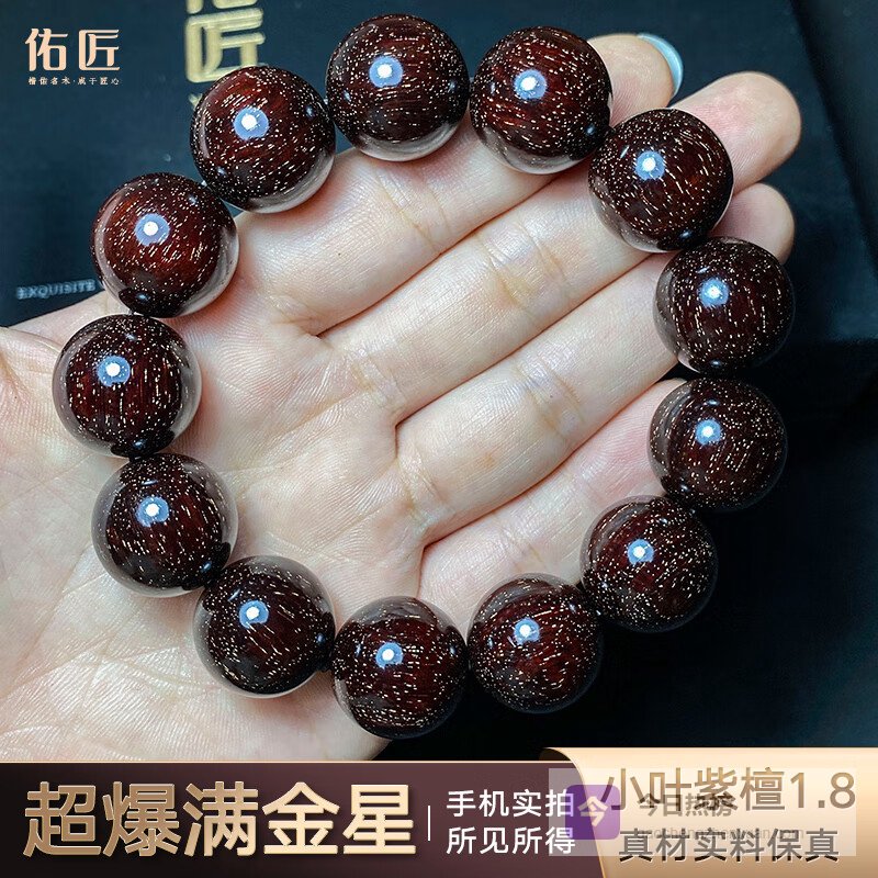 【品牌直营】佑匠印度小叶紫檀手串男士佛珠高油密老料檀香紫檀带金星文玩手串18mm*13颗¥
