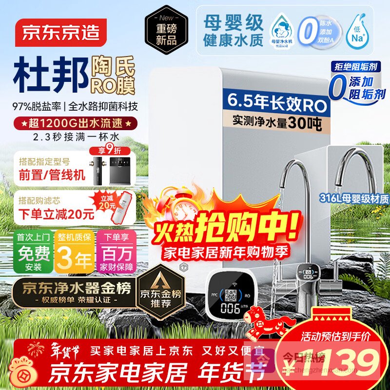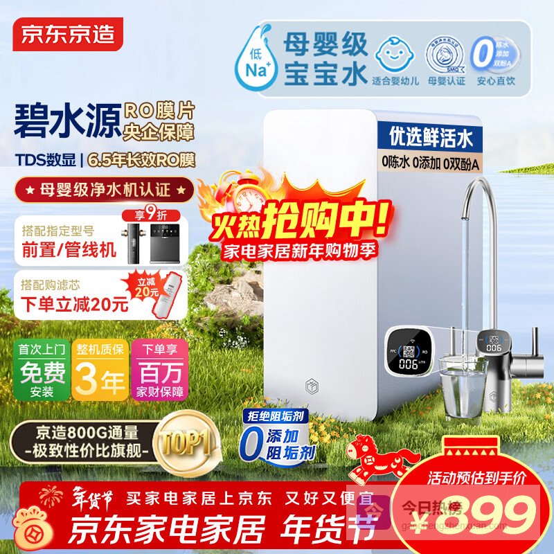 先说说京东京造,它最大的特点就是“性价比”,而且产品线非常丰富,从几百块到三千多的型号都有。它的优势在于功能全面,像双出水、TDS显示、APP智能控制这些功能,在它家不少型号上都能看到,而且大部分机型采用的都是大通量RO膜,出水速度快。但要说到特别突出的亮点,可能就是它的零陈水技术和全水路抑菌功能了,能保证水质新鲜。