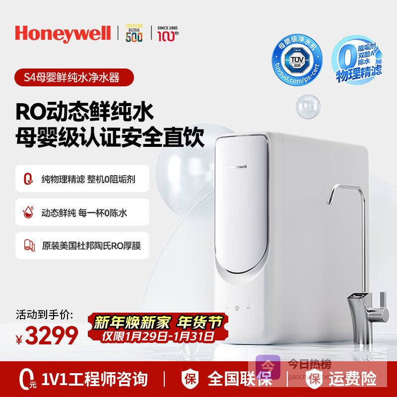 霍尼韦尔(Honeywell)双RO净水器 0阻垢剂 1000G大流速 6年反渗透厨下式净水机家用 母婴级 厨房过滤器净饮水直饮机 S4¥