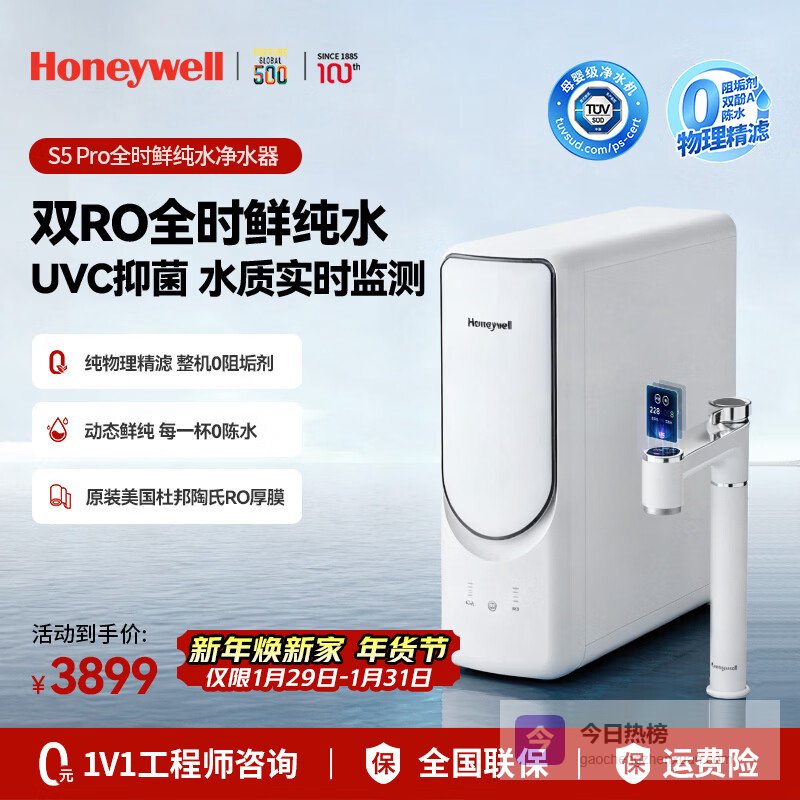 霍尼韦尔(Honeywell)双RO超纯净化 0阻垢剂净水器 1200G大流速 6年反渗透厨下式母婴级净水机厨房家用 S5 Pro系列(S5)¥