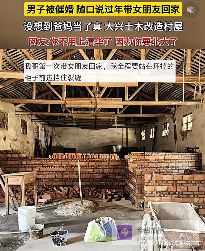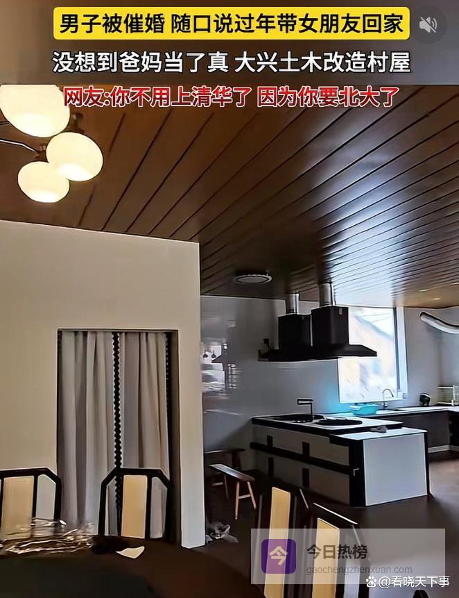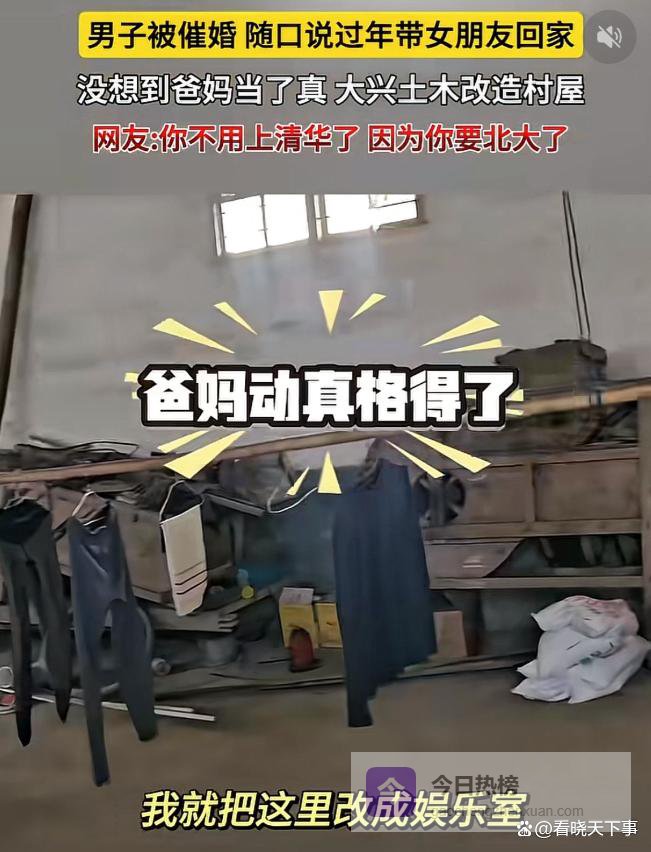 这下玩笑开大了!湖南,一男子过年前和父母打视频,母亲看他一直没有对象,心里着急,就多唠叨了两句,男子随口说乐居带女朋友回家过年,结果等她过年回家时发现,父母不仅当真了,还把一个房子给收拾出来。网友:这下神仙都救不了你了