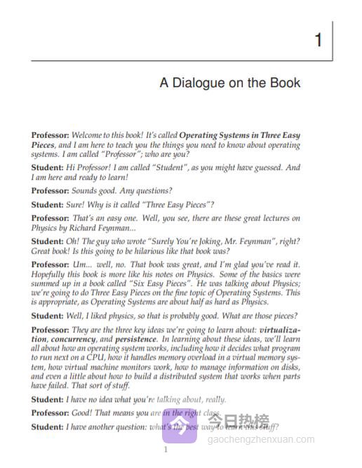 全书 50 章,分三篇:虚拟化、并发、持久性。作者把枯燥原理塞进一问一答的对话里,字里行间带着幽默,却句句戳到痛处。更贴心的是,每章都附上可编译运行的代码,不是伪代码那种“看起来会跑”,而是真刀真枪能调试的。课后还有练习,老师能拿来当作业,学生能拿来当实验报告,真正做到“学完就能写”。