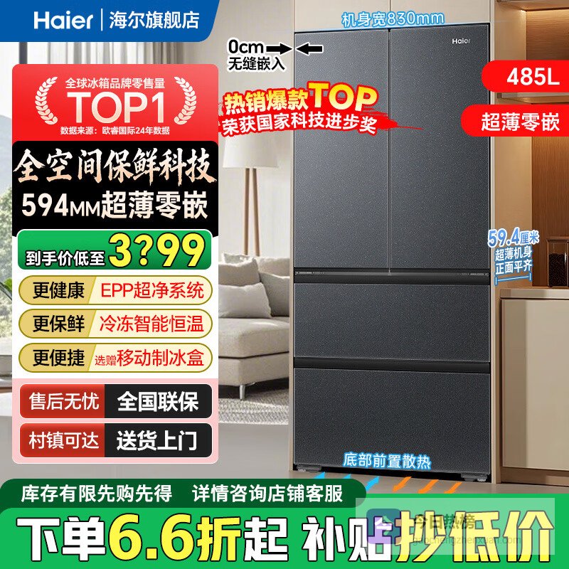 海尔全空间保鲜冰箱质量好吗,评测介绍几款热门型号1、海尔486L法式多门冰箱