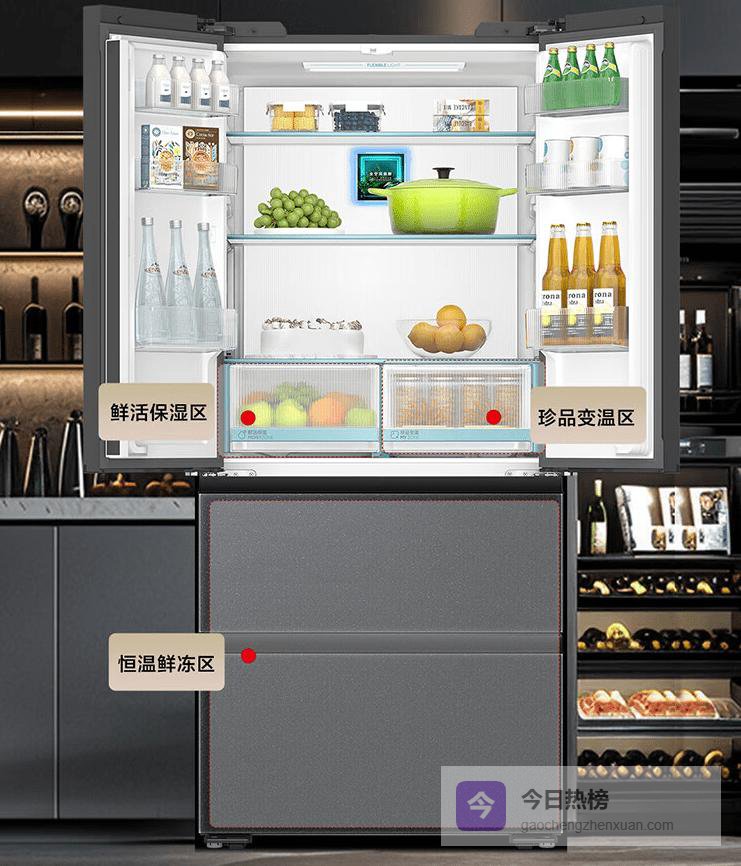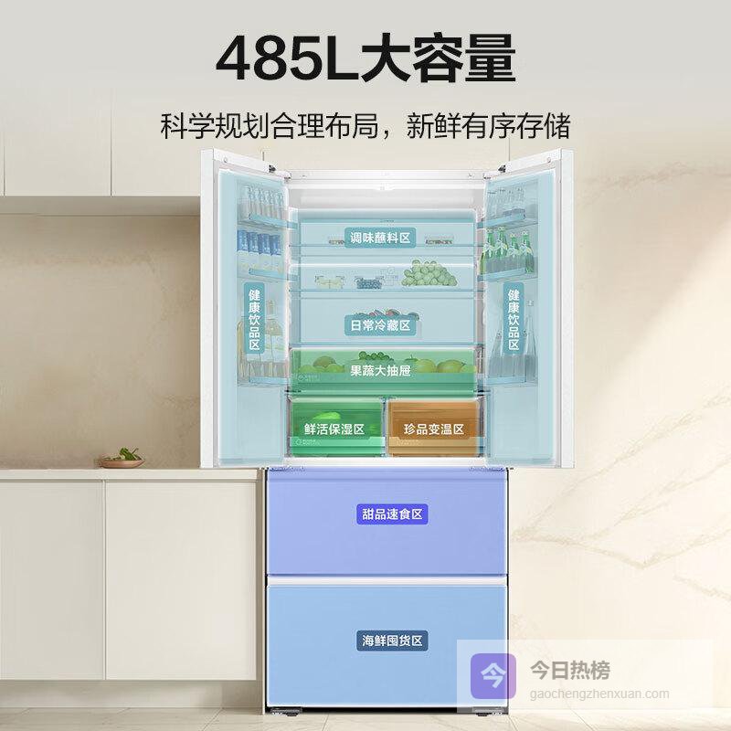这款冰箱采用594mm超薄零嵌入设计,可以轻松实现与橱柜的无缝对接,让厨房空间更整洁。它的法式多门布局方便分类存储,降低食材串味的可能,使用体验更灵活。总容量达到486升,冷藏和冷冻空间都宽敞,满足一家人的日常储存需求。