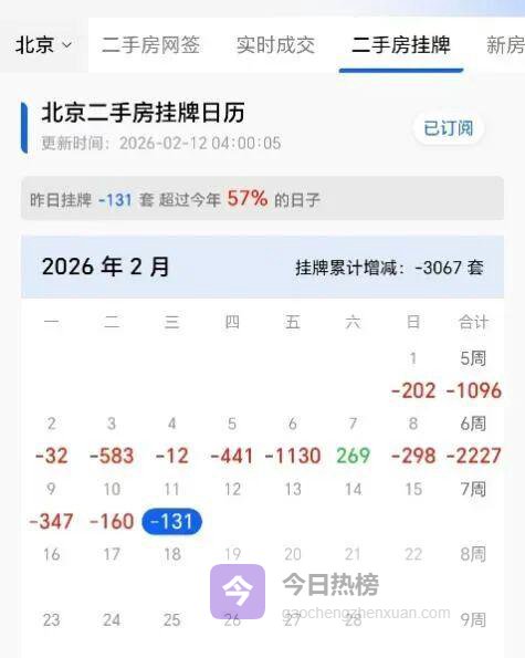 非常明显的一个数据,进入到2026年以来,全国重点城市二手房的月度挂牌量持续地减少。