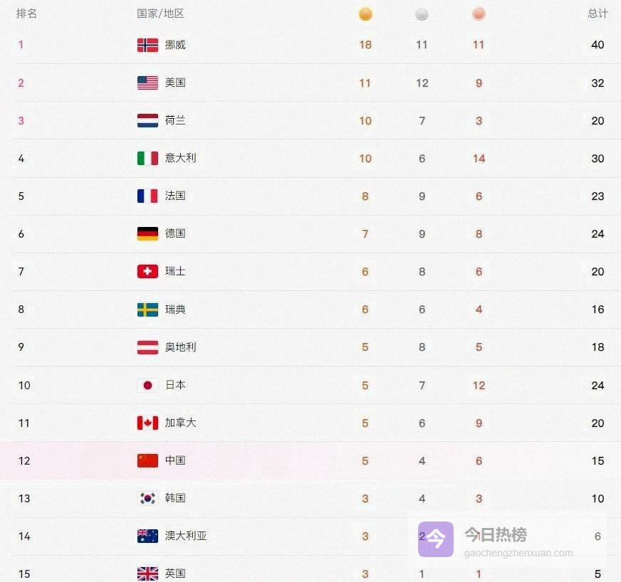 奖牌榜排名锁定第12位,身后的韩国、澳大利亚、英国已无力反超