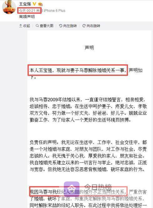 2016年8月的某个清晨,王宝强的社交媒体账号意外发布了一份离婚公告,文中最后两段指出他的妻子马蓉在婚内与经纪人宋喆存在不正当关系。