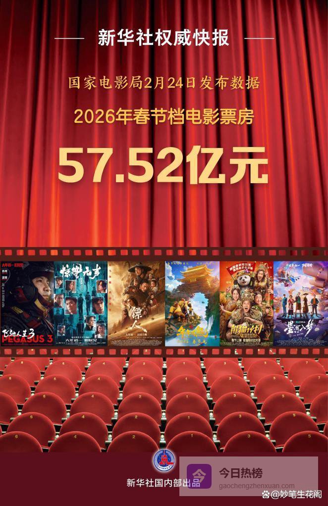 57.52亿的票房,从来不是冰冷的数字,而是1.2亿人次的欢乐与陪伴,是中国人对新春的美好期许,是中国电影对观众的用心回馈。这个春节档,我们在影院里感受热血、收获感动、共享团圆,荧幕上的光影闪烁,荧幕下的欢声笑语,共同勾勒出最动人的中国年味。